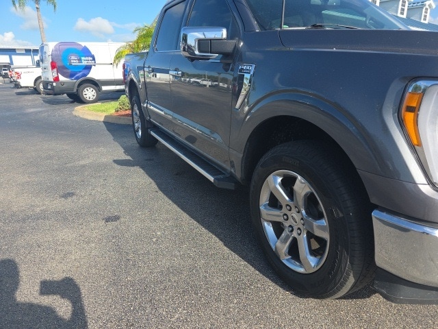 Features include: Bed Utility Package (BoxLink, LED Box Lighting, Power Tailgate, and Tailgate Step w/Tailgate Work Surface), Equipment Group 501A Mid (Onboard 400W Outlet and Radio: B&O Sound System by Bang & Olufsen), FX4 Off-Road Package, Lariat Chrome Appearance Package (6" Bright Polished Running Board, Chrome 2-Bar Grille w/4 Minor Bars, Chrome Door & Tailgate Handles w/Body-Color Bezel, Chrome Single-Tip Exhaust, Chrome Skull Caps on Exterior Mirrors, and Wheels: 18" Chrome-Like PVD), Trailer Tow Package (Class IV Trailer Hitch Receiver, Integrated Trailer Brake Controller, and Pro Trailer Backup Assist), 18" Machined-Aluminum Wheels, 3.31 Axle Ratio, 360 Degree Camera, 4-Wheel Disc Brakes, 7 Speakers, ABS brakes, Adjustable pedals, Air Conditioning, Alloy wheels, AM/FM radio: SiriusXM with 360L, Auto High-beam Headlights, Auto Start-Stop Removal, Auto-dimming door mirrors, Auto-dimming Rear-View mirror, Automatic temperature control, Brake assist, Bumpers: chrome, Compass, Connected Navigation & SiriusXM w/360L Removal, Delay-off headlights, Driver door bin, Driver vanity mirror, Dual front impact airbags, Dual front side impact airbags, Electronic Locking w/3.31 Axle Ratio, Electronic Stability Control, Emergency communication system: SYNC 4 911 Assist, Extended Range 36 Gallon Fuel Tank, Exterior Parking Camera Rear, Front anti-roll bar, Front Center Armrest w/Storage, Front dual zone A/C, Front fog lights, Front reading lights, Front wheel independent suspension, Fully automatic headlights, Heated door mirrors, Heated front seats, Illuminated entry, Interior Work Surface, Leather-Trimmed 40/20/40 Front Seat, LED Sideview Mirror Spotlights, Low tire pressure warning, Memory seat, Occupant sensing airbag, Outside temperature display, Overhead airbag, Overhead console, Panic alarm, Passenger door bin, Passenger vanity mirror, Pedal memory, Power door mirrors, Power driver seat, Power passenger seat, Power steering, Power windows, Radio data system, Radio: AM/FM SiriusXM w/360L, Rear reading lights, Rear seat center armrest, Rear step bumper, Rear window defroster, Remote keyless entry, Security system, Speed control, Speed-sensing steering, Split folding rear seat, Steering wheel mounted audio controls, SYNC 4 w/Enhanced Voice Recognition, Tachometer, Telescoping steering wheel, Tilt steering wheel, Traction control, Tray Style Floor Liner, Trip computer, Turn signal indicator mirrors, Variably intermittent wipers, Ventilated front seats, Voltmeter, and Wheels: 20" Chrome-Like PVD.