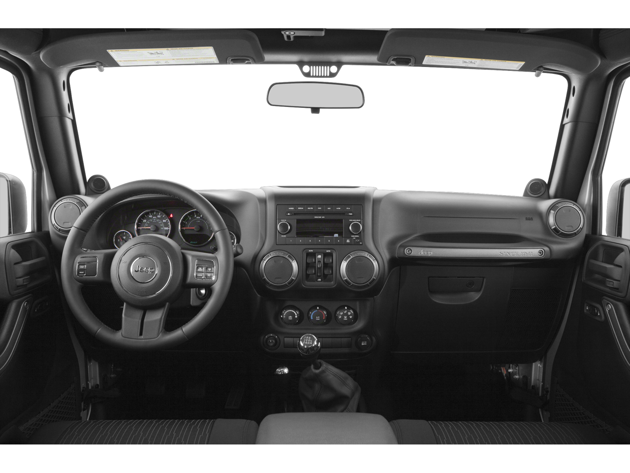 Features include: Quick Order Package 24C, 16 x 7.0 Luxury Styled Steel Wheels, 3.21 Rear Axle Ratio, 4-Wheel Disc Brakes, 8 Speakers, ABS brakes, Air Conditioning, AM/FM radio, Anti-Spin Differential Rear Axle, Audio Jack Input for Mobile Devices, Brake assist, CD player, Cloth Seats w/Adjustable Head Restraints, Compass, Driver door bin, Driver Height Adjuster Seat, Driver vanity mirror, Dual front impact airbags, Electronic Stability Control, Front anti-roll bar, Front Bucket Seats, Front Center Armrest w/Storage, Front fog lights, Integrated roll-over protection, Low tire pressure warning, Normal Duty Suspension, Occupant sensing airbag, Outside temperature display, Passenger door bin, Passenger vanity mirror, Power steering, R1234YF A/C Refrigerant, Radio: 130, Rear anti-roll bar, Speed control, Split folding rear seat, Steering wheel mounted audio controls, Sunrider Soft Top, Tachometer, Tilt steering wheel, Traction control, Trip computer, and Variably intermittent wipers.