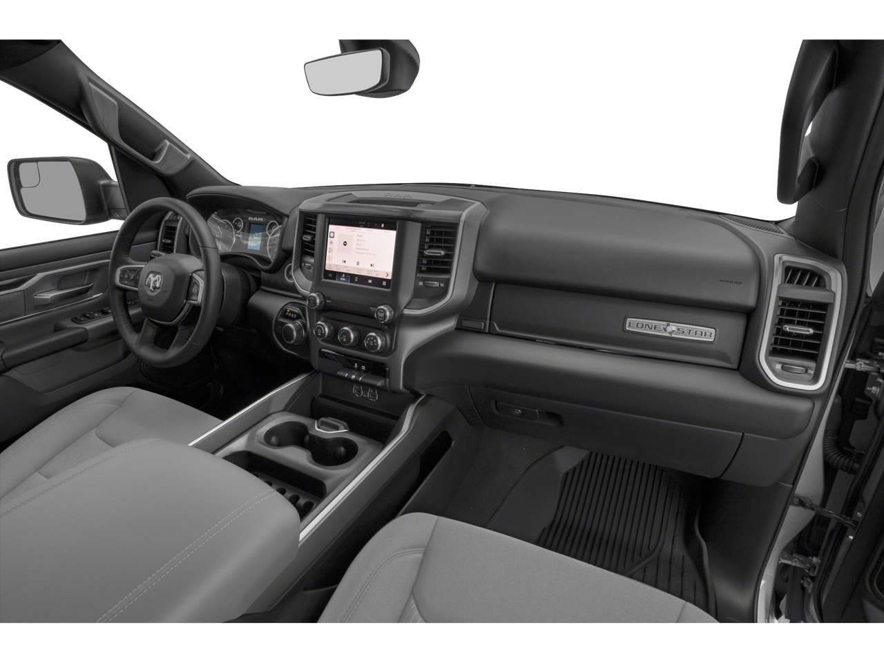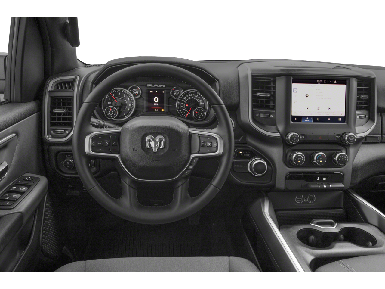 Features include: Big Horn Level 2 Equipment Group (115V Auxiliary Power Outlet, 115V Auxiliary Rear Power Outlet, 400W Inverter, 4G LTE Wi-Fi Hot Spot, 8.4 Touchscreen Display, Air Conditioning ATC w/Dual Zone Control, Apple CarPlay, Auto-Dimming Exterior Driver Mirror, Auto-Dimming Rear-View Mirror, Black Exterior Mirrors, Black Premium Power Mirrors, Bluetooth® Handsfree Phone & Audio, Class IV Receiver Hitch, Cluster 7.0 TFT Color Display, Connectivity - US/Canada, Convex Wide-Angle Mirror Insert, Exterior Mirrors Courtesy Lamps, Exterior Mirrors w/Heating Element, Exterior Mirrors w/Supplemental Signals, For Details, Visit DriveUconnect.com, For More Info, Call 800-643-2112, Global Telematics Box Module (TBM), Glove Box Lamp, Google Android Auto, GPS Antenna Input, Heated Front Seats, Heated Steering Wheel, Integrated Center Stack Radio, Media Hub w/2 Charge Only USBs, ParkSense Front/Rear Park Assist w/Stop, Power 2-Way Driver Lumbar Adjust, Power 8-Way Driver Seat, Power Adjustable Pedals, Power-Folding Mirrors, Radio: Uconnect 5 W w/8.4 Display, Rear Dome w/On/Off Switch Lamp, Rear Power Sliding Window, Rear Window Defroster, Remote Start System, Security Alarm, SiriusXM Radio Service, SiriusXM Satellite Radio, Sun Visors w/Illuminated Vanity Mirrors, Universal Garage Door Opener, and USB Host Flip), Night Edition (3 Rear Seat Head Restraints, 4 Way Front Headrests, Accent Color Premium Power Mirrors, Anti-Spin Differential Rear Axle, Black Exterior Truck Badging, Black Headlamp Bezels, Black Interior Accents, Black Painted Exterior Mirrors Caps, Body Color Front Bumper, Body Color Rear Bumper w/Step Pads, Bucket Seats, Delete LED Lamp - Floor Console Bin, Deluxe Cloth Bucket Seats, Dual Exhaust w/Black Tips, Front Seat Back Map Pockets, Full Length Floor Console, Manual Adjust 4-Way Front Passenger Seat, Rear 60/40 Folding Seat, and Wheels: 20 x 9.0 Premium Paint/Polished), Quick Order Package 23Z Big Horn (Big Horn Badge), 4-Wheel Disc Brakes, 48V Belt Starter Generator, 6 Speakers, ABS brakes, Air Conditioning, Alloy wheels, AM/FM radio, Brake assist, Bumpers: chrome, Cloth Bench Seat, Compass, Connected Services Delete Credit, Delay-off headlights, Driver door bin, Dual front impact airbags, Dual front side impact airbags, Electronic Stability Control, Emergency communication system: SiriusXM Guardian, Front anti-roll bar, Front Center Armrest w/Storage, Front fog lights, Front reading lights, Front wheel independent suspension, Fully automatic headlights, Heated door mirrors, Illuminated entry, Integrated Voice Command w/Bluetooth®, Leather steering wheel, Low tire pressure warning, Occupant sensing airbag, Outside temperature display, Overhead airbag, Overhead console, Panic alarm, ParkView Rear Back-Up Camera, Passenger door bin, Passenger vanity mirror, Power door mirrors, Power steering, Power windows, Radio data system, Radio: Uconnect 3 w/5 Display, Rear anti-roll bar, Rear seat center armrest, Rear step bumper, Remote keyless entry, Speed control, Split folding rear seat, Steering wheel mounted audio controls, Tachometer, Telescoping steering wheel, Tilt steering wheel, Traction control, Trip computer, Variably intermittent wipers, Voltmeter, and Wheels: 18 x 8 Cast-Aluminum PainteD.