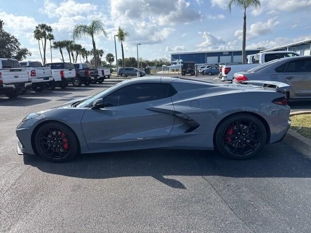 Features include: Battery Protection Package, Memory Driver & Passenger Convenience Package, Preferred Equipment Group 2LT (2 Cargo Nets, Bose Performance Series Sound System w/14 Speakers, Driver Power Bolster Seat Adjuster, Electrical Theft Deterrent System, HD Front & Rear Vision Cameras, Head-Up Display, Heated & Vented Driver & Passenger Seats, Heated Steering Wheel, Passenger Power Bolster Seat Adjuster, Performance Data & Video Recorder, Power Driver Lumbar Control Seat Adjuster, Power Passenger Lumbar Control Seat Adjuster, Power-Adjustable Outside Heated Mirrors, Rear Cross Traffic Alert, Side Blind Zone Alert, Universal Home Remote, Vehicle Inclination Theft Deterrent Sensor, Vehicle Interior Movement Theft Deterrent Sensor, and Wireless Charging for Devices), Z51 Performance Package (Electronic Limited-Slip Differential, Heavy-Duty Cooling System, Performance Exhaust w/Stainless-Steel Tips, Performance Rear Axle Ratio, Rear Z51 Spoiler, Z51 Performance Brakes, and Z51 Performance Suspension), 14 Speakers, 4-Wheel Disc Brakes, 8-Way Power Driver Seat Adjuster, 8-Way Power Passenger Seat Adjuster, ABS brakes, Air Conditioning, Alloy wheels, AM/FM radio: SiriusXM, Auto High-beam Headlights, Auto-dimming door mirrors, Auto-dimming Rear-View mirror, Automatic Leveling System Headlamp Control, Automatic temperature control, Black Exhaust Tips, Brake assist, Bright Red-Painted Calipers, Bumpers: body-color, Compass, Convertible HardTop, Convertible roof lining, Delay-off headlights, Driver door bin, Driver vanity mirror, Dual front impact airbags, Dual front side impact airbags, Electronic Stability Control, Emergency communication system: OnStar and Chevrolet connected services capable, Exterior Parking Camera Rear, Four wheel independent suspension, Front anti-roll bar, Front Bucket Seats, Front Center Armrest, Front dual zone A/C, Front Lift Adjustable Height w/Memory, Front reading lights, Fully automatic headlights, Garage door transmitter, Glass rear window, GT1 Bucket Seats, GT2 Bucket Seats, Heated door mirrors, Heated front seats, Heated steering wheel, Illuminated entry, Integrated roll-over protection, Lane Departure Warning System, Leather Shift Knob, Leather steering wheel, Low tire pressure warning, Memory seat, Mulan Lthr Seating Surfaces w/Perforated Inserts, Navigation System, Occupant sensing airbag, Outside temperature display, Overhead console, Panic alarm, Passenger door bin, Passenger vanity mirror, Power convertible roof, Power door mirrors, Power driver seat, Power passenger seat, Power steering, Power windows, Premium audio system: Chevrolet Infotainment 3 Premium, Radio data system, Radio: Chevrolet Infotainment 3 Premium System, Rear anti-roll bar, Rear window defroster, Remote keyless entry, Security system, Speed control, Speed-sensing steering, Sport steering wheel, Steering wheel memory, Steering wheel mounted audio controls, Tachometer, Telescoping steering wheel, Tilt steering wheel, Traction control, Trip computer, Turn signal indicator mirrors, Variably intermittent wipers, Ventilated front seats, Voltmeter, Wheels: 19" x 8.5" Fr/20" x 11" Rr Bright Silver, and Wheels: 19" x 8.5" Fr/20" x 11" Rr Gloss Black.