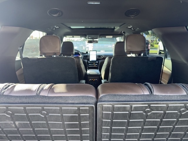 Features include: Class IV Trailer Tow Package, Equipment Group 701A, Technology Package (10.1" LCD Capacitive Portrait Touchscreen and 2 Additional Speakers), 12 Speakers, 3.31 Non-Limited-Slip Rear Axle Ratio, 3rd row seats: bench, 4-Wheel Disc Brakes, 4G LTE Wi-Fi Hotspot Credit, ABS brakes, Air Conditioning, Alloy wheels, AM/FM radio: SiriusXM, Auto High-beam Headlights, Auto-dimming door mirrors, Auto-dimming Rear-View mirror, Automatic temperature control, Brake assist, Bumpers: body-color, Compass, Delay-off headlights, Driver door bin, Driver vanity mirror, Dual front impact airbags, Dual front side impact airbags, Electronic Stability Control, Emergency communication system: SYNC 3 911 Assist, Exterior Parking Camera Rear, FordPass Connect, Four wheel independent suspension, Front anti-roll bar, Front Bucket Seats, Front Center Armrest, Front dual zone A/C, Front fog lights, Front reading lights, Fully automatic headlights, Garage door transmitter, Genuine wood dashboard insert, Heated door mirrors, Heated front seats, Heated rear seats, Heated steering wheel, Illuminated entry, Knee airbag, Leather steering wheel, Low tire pressure warning, Memory seat, Mesa Del Rio Lthr Htd/Vent Sport Capt's Chairs, Navigation System, Occupant sensing airbag, Outside temperature display, Overhead airbag, Overhead console, Panic alarm, Passenger door bin, Passenger vanity mirror, Power door mirrors, Power driver seat, Power Liftgate, Power passenger seat, Power steering, Power windows, Radio data system, Radio: B&O Sound System by Bang & Olufsen, Rain sensing wipers, Rear air conditioning, Rear anti-roll bar, Rear reading lights, Rear window defroster, Rear window wiper, Remote keyless entry, Roof rack: rails only, Security system, Speed control, Speed-sensing steering, Speed-Sensitive Wipers, Split folding rear seat, Spoiler, Steering wheel memory, Steering wheel mounted audio controls, SYNC 3 Communications & Entertainment System, SYNC 3/Apple CarPlay/Android Auto, Tachometer, Telescoping steering wheel, Tilt steering wheel, Traction control, Trip computer, Turn signal indicator mirrors, Twin Panel Moonroof, Variably intermittent wipers, Ventilated front seats, Voice-Activated Touchscreen Navigation System, and Wheels: 20" 10-Spoke Aluminum w/KR Center Cap.