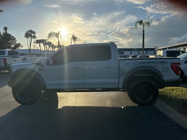 Features include: Equipment Group 801A Standard, GVWR: 7,300 lbs Payload Package, Moonroof & Tailgate (Power Tailgate and Twin Panel Moonroof), Raptor 37 Performance Package (Raptor 37 Graphics, Sport Tuned Shock Absorbers, and Wheels: Unique 17" Forged Aluminum Bead-Lock Capable), Raptor Carbon Fiber Package, 17" Cast Aluminum Wheels, 18 Speakers, 4-Wheel Disc Brakes, ABS brakes, Adaptive suspension, Adjustable pedals, Air Conditioning, Alloy wheels, AM/FM radio: SiriusXM with 360L, Auto High-beam Headlights, Auto Start-Stop Removal (DISC), Auto tilt-away steering wheel, Auto-dimming door mirrors, Auto-dimming Rear-View mirror, Automatic temperature control, Brake assist, Bumpers: body-color, Compass, Delay-off headlights, Driver door bin, Driver vanity mirror, Dual front impact airbags, Dual front side impact airbags, Electronic Locking w/4.10 Axle Ratio, Electronic Stability Control, Emergency communication system, Exterior Parking Camera Rear, Front anti-roll bar, Front Bucket Seats, Front Center Armrest, Front dual zone A/C, Front fog lights, Front reading lights, Front wheel independent suspension, Fully automatic headlights, Garage door transmitter, Heated door mirrors, Heated front seats, Heated rear seats, Heated steering wheel, Illuminated entry, Inclination/Intrusion Sensor Removal, Lane Departure Warning System, Leather Trim Seats w/Heated 2nd Row, Low tire pressure warning, Memory seat, Navigation system: Connected Navigation, Occupant sensing airbag, Outside temperature display, Overhead airbag, Overhead console, Panic alarm, Partitioned Lockable Fold-Flat Storage, Passenger door bin, Passenger vanity mirror, Pedal memory, Power door mirrors, Power driver seat, Power passenger seat, Power steering, Power windows, Pro Power Onboard - 2KW, Radio data system, Radio: B&O Unleashed Sound System by Bang & Olufsen, Rain sensing wipers, Rear reading lights, Rear step bumper, Rear window defroster, Remote keyless entry, Security system, Speed control, Speed-sensing steering, Split folding rear seat, Steering Wheel Heat Removal (DISC), Steering wheel memory, Steering wheel mounted audio controls, SYNC 4 w/Enhanced Voice Recognition, Tachometer, Tailgate Applique FORD Delete, Telescoping steering wheel, Tilt steering wheel, Traction control, Trip computer, Turn signal indicator mirrors, Variably intermittent wipers, and Ventilated front seats.