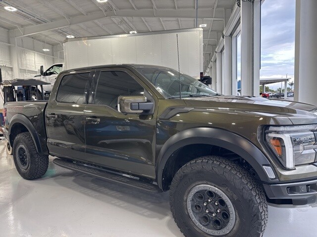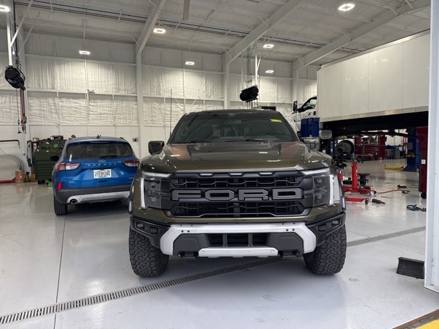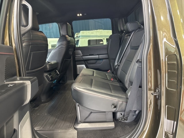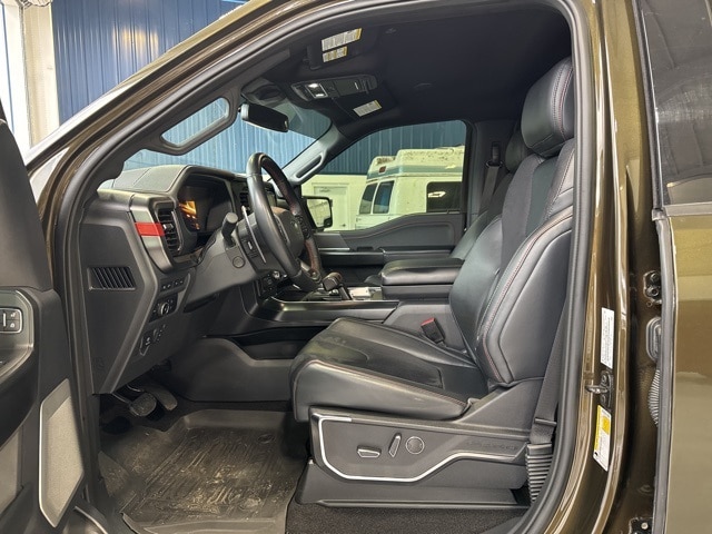 Features include: Equipment Group 802A Raptor 37 (Alcantara Suede & Leather RECARO Front Seats, Carbon Fiber Interior Appliques, Dual Valve Shocks, Modular Front Bumper, and Wheels: Raptor 37 Unique 17" Cast Aluminum), 14 Speakers, 17" Cast Aluminum Wheels, 4-Wheel Disc Brakes, ABS brakes, Adaptive suspension, Adjustable pedals, Air Conditioning, Alloy wheels, AM/FM radio: SiriusXM with 360L, Auto High-beam Headlights, Auto tilt-away steering wheel, Auto-dimming door mirrors, Auto-dimming Rear-View mirror, Automatic temperature control, Brake assist, Bumpers: body-color, Compass, Delay-off headlights, Driver door bin, Driver vanity mirror, Dual front impact airbags, Dual front side impact airbags, Electronic Locking w/4.10 Axle Ratio, Electronic Stability Control, Emergency communication system: SYNC 4 911 Assist, Front anti-roll bar, Front Bucket Seats, Front Center Armrest, Front dual zone A/C, Front fog lights, Front License Plate Bracket, Front reading lights, Front wheel independent suspension, Fully automatic headlights, Garage door transmitter, Heads-Up Display, Heated door mirrors, Heated front seats, Heated rear seats, Heated steering wheel, Illuminated entry, Lane Departure Warning System, Leather Trim Seats, Low tire pressure warning, Memory seat, Navigation system: Connected Navigation, Occupant sensing airbag, Outside temperature display, Overhead airbag, Overhead console, Panic alarm, Passenger door bin, Passenger vanity mirror, Pedal memory, Power door mirrors, Power driver seat, Power passenger seat, Power steering, Power windows, Radio data system, Radio: B&O Unleashed Sound System by Bang & Olufsen, Rain sensing wipers, Rear reading lights, Rear step bumper, Rear window defroster, Remote keyless entry, Security system, Speed control, Speed-sensing steering, Split folding rear seat, Steering wheel memory, Steering wheel mounted audio controls, SYNC 4 w/Enhanced Voice Recognition, Tachometer, Telescoping steering wheel, Tilt steering wheel, Tough Bed Spray-In Bedliner, Traction control, Trip computer, Turn signal indicator mirrors, Variably intermittent wipers, and Ventilated front seats.