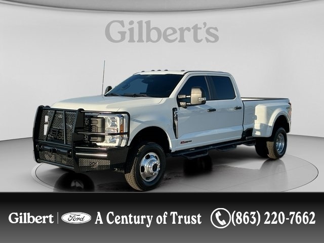 Features include: FX4 Off-Road Package (Hill Descent Control, Off-Road Specifically Tuned Shock Absorbers, and Unique FX4 Off-Road Box Decal), GVWR: 14,000 lb Payload Package, 17" Forged Polished Aluminum Wheels, 4-Wheel Disc Brakes, ABS brakes, Air Conditioning, Brake assist, Compass, Delay-off headlights, Dual front impact airbags, Dual front side impact airbags, Dual rear wheels, Electronic Stability Control, Emergency communication system: SYNC 4 911 Assist, Exterior Parking Camera Rear, Front anti-roll bar, Front License Plate Bracket, Front reading lights, Fully automatic headlights, Gooseneck Hitch Kit (Pre-Installed), Heated door mirrors, Illuminated entry, Low tire pressure warning, Outside temperature display, Overhead airbag, Overhead console, Panic alarm, Passenger vanity mirror, Power door mirrors, Power steering, Power windows, Rear anti-roll bar, Rear reading lights, Rear step bumper, Remote keyless entry, Speed control, Split folding rear seat, Steering wheel mounted audio controls, Tachometer, Telescoping steering wheel, Tilt steering wheel, Traction control, Trip computer, Turn signal indicator mirrors, and Variably intermittent wipers.