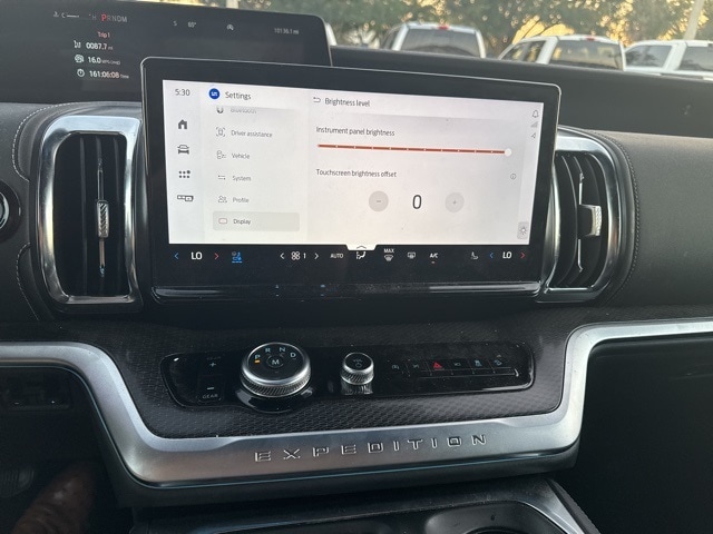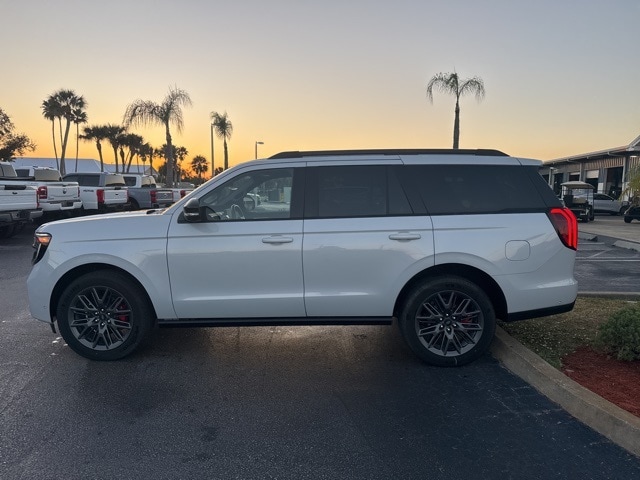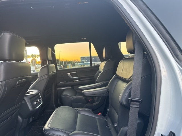 Features include: Driver's Package (Continuous Control Damping Suspension, Radio: B&O Unleashed Sound System by Bang & Olufsen, and SiriusXM w/360L), Equipment Group 600A Standard Package (2nd Row Power-Folding Captain's Chairs), Stealth Appearance Package (Black Belt Molding, Black Expedition Lettering On Hood, Black Headlamp Bezel w/Ebony Trim Applique, Black Platinum Badge On Tailgate, Black Roof Rails, Carbon Black Front Bumper/Fascia, Engine Sound Enhancer, Rear Side Windows Laminated Glass, and Signature Grille Lighting), Stealth Performance Package (High Flow Exhaust System, Red Brake Calipers, and Wheels: 22" Magnetite Painted Aluminum), 10 Speakers, 3.73 Axle Ratio, 3rd row seats: split-bench, 4-Wheel Disc Brakes, ABS brakes, Adjustable pedals, Air Conditioning, Alloy wheels, AM/FM radio: SiriusXM with 360L, Apple CarPlay/Android Auto, Auto High-beam Headlights, Auto-dimming door mirrors, Auto-dimming Rear-View mirror, Automatic temperature control, Brake assist, Bumpers: body-color, Compass, Delay-off headlights, Driver door bin, Driver vanity mirror, Dual front impact airbags, Dual front side impact airbags, Electronic Stability Control, Emergency communication system: 911 Assist, Exterior Parking Camera Rear, Four wheel independent suspension, Front anti-roll bar, Front Bucket Seats, Front Center Armrest, Front dual zone A/C, Front License Plate Bracket, Front reading lights, Fully automatic headlights, Garage door transmitter, Genuine wood dashboard insert, Genuine wood door panel insert, Heated & Ventilated Leather Front Captain's Chairs, Heated door mirrors, Heated front seats, Heated rear seats, Heated steering wheel, Illuminated entry, Leather steering wheel, Low tire pressure warning, Memory seat, Navigation System, Occupant sensing airbag, Outside temperature display, Overhead airbag, Overhead console, Panic alarm, Passenger door bin, Passenger vanity mirror, Pedal memory, Power door mirrors, Power driver seat, Power moonroof: Vista Roof, Power passenger seat, Power steering, Power windows, Radio data system, Radio: B&O Sound System by Bang & Olufsen, Rain sensing wipers, Rear air conditioning, Rear anti-roll bar, Rear reading lights, Rear window defroster, Rear window wiper, Reclining 3rd row seat, Remote keyless entry, Security system, Speed control, Speed-sensing steering, Speed-Sensitive Wipers, Split folding rear seat, Spoiler, Steering wheel memory, Steering wheel mounted audio controls, Tachometer, Telescoping steering wheel, Tilt steering wheel, Traction control, Trip computer, Turn signal indicator mirrors, Variably intermittent wipers, Ventilated front seats, Voltmeter, and Wheels: 20" Ebony Bright Machined Aluminum.
