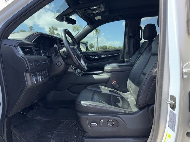 Features include: Advanced Security Package (Glass Breakage Sensor, Theft-Deterrent Alarm System, Vehicle Inclination Sensor, and Vehicle Interior Movement Sensor), Advanced Technology Package (Adaptive Cruise Control, Enhanced Automatic Emergency Braking, Inside Rearview Auto-Dimming Rear Camera Mirror, and Rear Camera Mirror Washer), Denali Premium Package (Dual-Pane Panoramic Power Sunroof and Power-Retractable Assist Steps), Illumination Package (LPO) (Illuminated Front GMC Emblem (LPO) and Illuminated Mirror GMC Emblem (LPO)), Max Trailering Package (Extra Capacity Cooling System), Preferred Equipment Group 5SA (12-Way Power Seat Adjusters, 15" Diagonal Multi-Color Head-Up Display, 2 Presets For Outside Rearview Mirrors, 3rd Row 60/40 Power-Folding Split-Bench Seat, Bright Front & Rear Door Sill Plates, Chrome Door Handles w/Body-Color Strip, Dual Exhaust System, Galvano Bodyside Moldings, Hands-Free Power Programmable Rear Liftgate, HD Surround Vision, Heated & Ventilated Driver & Front Passenger Seats, Heated 2nd Row Outboard Position Seats, Heated Automatic Steering Wheel, Heated Driver & Front Passenger Seats, Hill Descent Control, Inside Rear-View Auto-Dimming Mirror, Outside Heated Power-Adjustable Mirrors, Power Release 2nd Row Bucket Seats, Power Tilt & Telescopic Steering Column, Rear Pedestrian Alert, Safety Alert Seat, and Universal Home Remote), 14 Speakers, 3.23 Rear Axle Ratio, 3rd row seats: split-bench, 4-Wheel Disc Brakes, ABS brakes, Adaptive suspension, Air Conditioning, Alloy wheels, AM/FM radio: SiriusXM with 360L, Apple CarPlay/Android Auto, Auto High-beam Headlights, Auto-dimming door mirrors, Auto-dimming Rear-View mirror, Auto-leveling suspension, Automatic Emergency Braking, Automatic temperature control, Bodyside moldings, Bose 14-Speaker Surround w/CenterPoint, Brake assist, Bumpers: body-color, Compass, Delay-off headlights, Driver door bin, Driver vanity mirror, Dual front impact airbags, Dual front side impact airbags, Electronic Stability Control, Emergency communication system: OnStar and GMC connected services capable, Following Distance Indicator, Forward Collision Alert, Four wheel independent suspension, Front & Rear Park Assist, Front anti-roll bar, Front Bucket Seats, Front Center Armrest, Front dual zone A/C, Front fog lights, Front Pedestrian Braking, Front reading lights, Fully automatic headlights, Garage door transmitter, HD Radio, Heads-Up Display, Heated door mirrors, Heated front seats, Heated rear seats, Heated steering wheel, Hitch Guidance w/Hitch View, Illuminated entry, In-Vehicle Trailering App, Integrated Trailer Brake Controller, IntelliBeam Automatic High Beam On/Off, Jet Black Interior Trim, Lane Change Alert w/Side Blind Zone Alert, Lane Keep Assist w/Lane Departure Warning, Leather steering wheel, Low tire pressure warning, Magnetic Ride Control Suspension, Memory seat, Navigation System, Occupant sensing airbag, Outside temperature display, Overhead airbag, Overhead console, Panic alarm, Passenger door bin, Passenger vanity mirror, Perforated Leather Seating Surfaces, Power door mirrors, Power driver seat, Power Liftgate, Power passenger seat, Power steering, Power windows, Radio: AM/FM/SiriusXM w/Navigation, Rain sensing wipers, Rear air conditioning, Rear anti-roll bar, Rear Cross Traffic Alert, Rear reading lights, Rear window defroster, Rear window wiper, Remote keyless entry, Roof rack: rails only, Security system, SiriusXM w/360L, Speed control, Speed-sensing steering, Split folding rear seat, Spoiler, Steering wheel memory, Steering wheel mounted audio controls, Tachometer, Telescoping steering wheel,