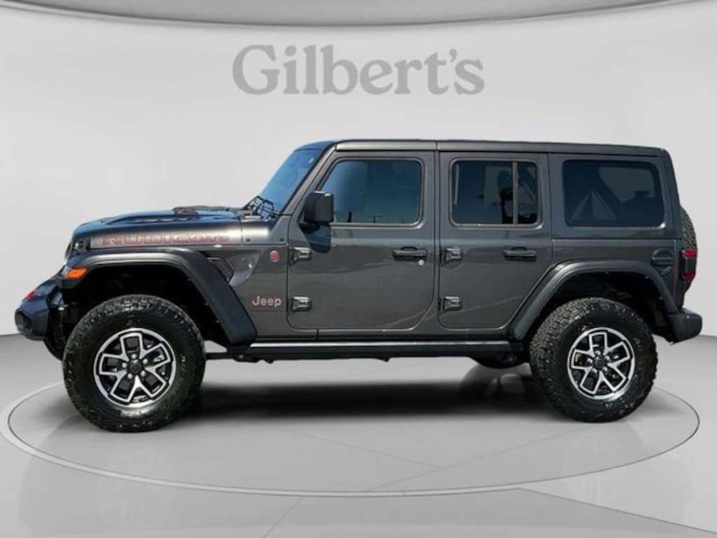 All advertised sales prices include all available rebates, incentives, discounts, and price reductions. Tax, tag, title, license, Dealer Service Fee of $899.00, Electronic Filing Fee of $188.50, and $695.00 Lease Acquisition Fee if applicable (unless itemized above) are extra. Not available with special finance or lease offers. Although every reasonable effort has been made to ensure the accuracy of the information contained on this site, absolute accuracy cannot be guaranteed. This site, and all information and materials appearing on it, are presented to the user as is without warranty of any kind, either express or implied. All vehicles are subject to prior sale. All prices, specifications and availability subject to change without notice. Some vehicles may have upfits or accessories that are not yet added to the price as they are in process of completion. Contact dealer for most current information. The actual mileage of Demonstration (DEMO) and Courtesy Transportation vehicles is more than normal new retail units and may be more than what is shown in the Vehicle Description due to these vehicles being in active service. Please call us to confirm current mileage. Convenience Group (Heated Front Seats, Heated Steering Wheel, and Universal Garage Door Opener), Quick Order Package 22R Rubicon, 4-Wheel Disc Brakes, 4.10 Rear Axle Ratio, 4G LTE Wi-Fi Hot Spot, 8 Speakers, 97 MPH Vehicle Max Speed Calibration, ABS brakes, Air Conditioning, Alloy wheels, AM/FM radio: SiriusXM, Apple CarPlay, Apple CarPlay/Android Auto, Automatic temperature control, Aux Battery, Auxiliary Switches, Body Color 3-Piece Hard Top, Brake assist, Class II Receiver Hitch, Cloth Low-Back Bucket Seats, Compass, Connectivity - US/Canada, Delay-off headlights, Driver door bin, Driver vanity mirror, Dual front impact airbags, Dual front side impact airbags, Electronic Stability Control, Emergency communication system: Jeep Connect, Freedom Panel Storage Bag, Front anti-roll bar, Front Bucket Seats, Front Center Armrest w/Storage, Front dual zone A/C, Front fog lights, Front License Plate Bracket (DISC), Front reading lights, Fully automatic headlights, Google Android Auto, Heated door mirrors, Illuminated entry, Integrated roll-over protection, Low tire pressure warning, Non-Lock Fuel Cap w/o Discriminator, Occupant sensing airbag, Outside temperature display, Overhead airbag, Panic alarm, ParkView Rear Back-Up Camera, Passenger door bin, Passenger vanity mirror, Performance Suspension, Power door mirrors, Power steering, Power windows, Radio data system, Radio: Uconnect 5 w/12.3 Display, Rear anti-roll bar, Rear reading lights, Rear Window Defroster, Rear Window Wiper/Washer, Remote keyless entry, Security system, Speed control, Split folding rear seat, Steering wheel mounted audio controls, Stop-Start Dual Battery System, Tachometer, Telescoping steering wheel, Tilt steering wheel, Traction control, Trip computer, Variably intermittent wipers, Voltmeter, and Wheels: 17 x 7.5 Machined/Painted Black.